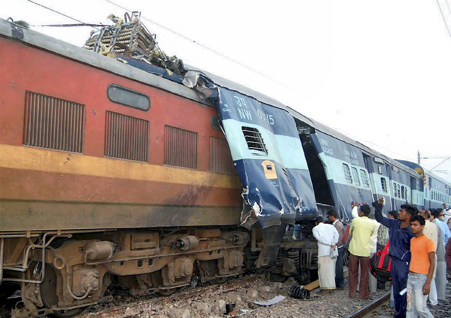 印度北方邦21日凌晨發生兩列火車相撞事故, 一輛來自西南部果阿的快運列車在馬圖拉附近與一列來自西部拉賈斯坦邦梅瓦爾的快運列車相撞,造成15人死亡。來源:中國新聞網