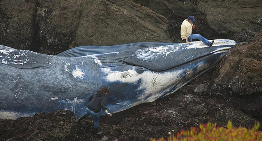 巨型藍鯨被輪船撞擊致死 尸體沖上海岸