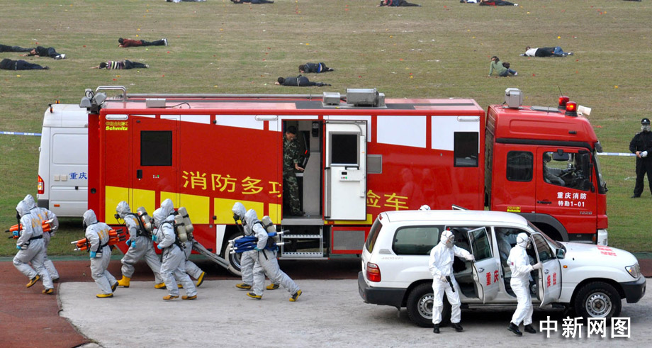 23日,推進“平安重慶”建設突發事件應急演練在該市渝中區大田灣體育場舉行,重慶各警種突精銳力量重裝登場,將各類事件一一化解。