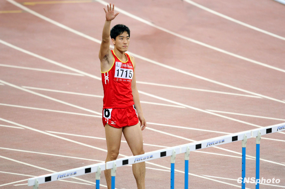 10月24日晚,全運會110米欄預賽在濟南奧體中心舉行,“飛人”劉翔以13秒75成績輕松晉級決賽。來源:中國新聞網