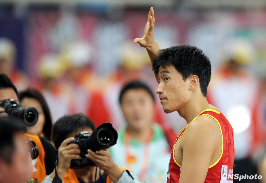 10月24日晚,全運會110米欄預賽在濟南奧體中心舉行,“飛人”劉翔以13秒75成績輕松晉級決賽。來源:中國新聞網