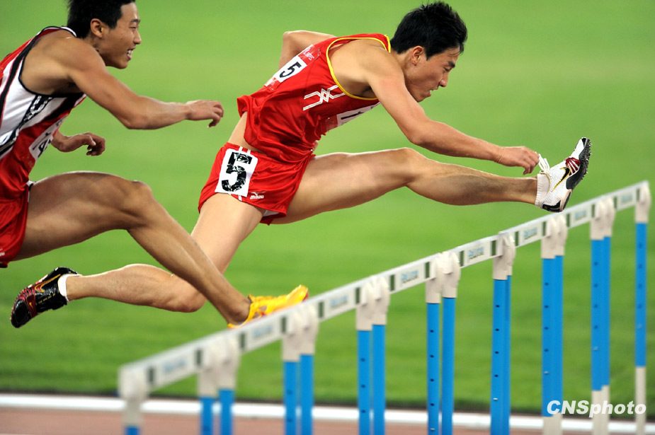 10月25日,在全運會田徑男子110米欄決賽中,上海代表團(tuán)選手、“中國飛人”劉翔以13秒34的成績勇奪冠軍,同時也成就了其全運會該項目三連冠的偉業(yè)。