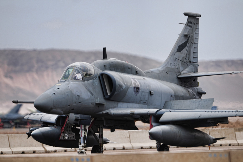 當地時間10月26日,美國、法國、阿根廷、巴西、智利等國的空軍在智利首都圣地亞哥以北的安托法加斯塔舉行了一場聯合空中軍事演習。通過模擬維和任務,交流作戰技術和經驗。圖為阿根廷空軍的戰機。