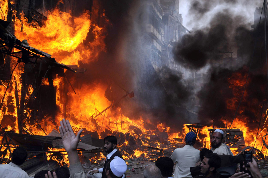 10月28日,巴基斯坦西北部城市白沙瓦一個人口密集的集市遭汽車炸彈襲擊。圖片來源:中國新聞網
