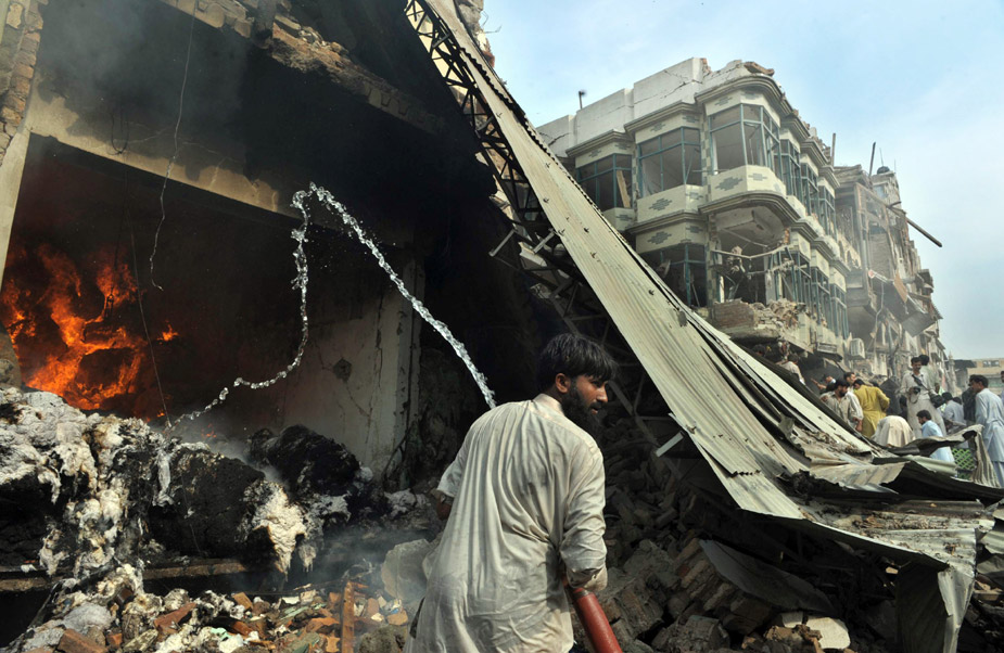 10月28日,巴基斯坦西北部城市白沙瓦一個人口密集的集市遭汽車炸彈襲擊。圖片來源:中國新聞網