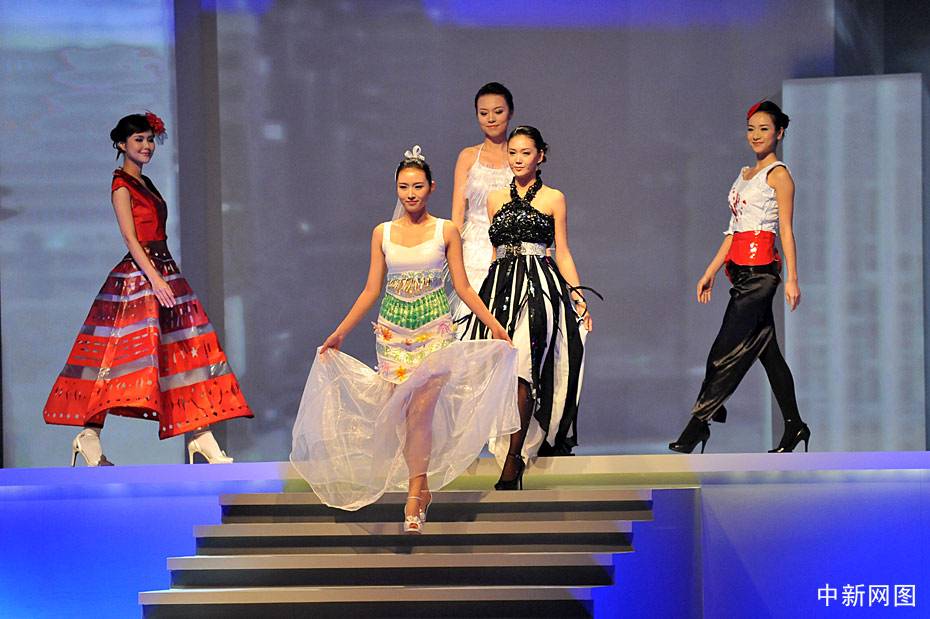 10月31日晚,“2009中華小姐環(huán)球大賽”總決賽上,12名入圍總決賽的佳麗身著各式服裝展現(xiàn)曼妙身姿,此外大賽還設(shè)計(jì)了一套“廢品服裝”呼吁環(huán)境保護(hù)。中新網(wǎng)記者 金碩 攝