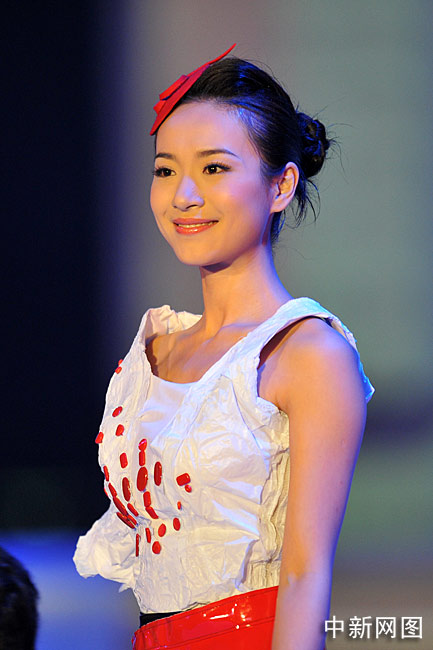 10月31日晚,“2009中華小姐環(huán)球大賽”總決賽上,12名入圍總決賽的佳麗身著各式服裝展現(xiàn)曼妙身姿,此外大賽還設(shè)計了一套“廢品服裝”呼吁環(huán)境保護。中新網(wǎng)記者 金碩 攝