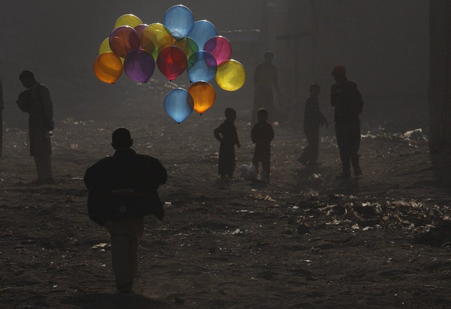 周日(25日),飽受戰火的阿富汗,一個男孩在首都喀布爾街頭手拿五彩氣球。 來源:中國新聞網
