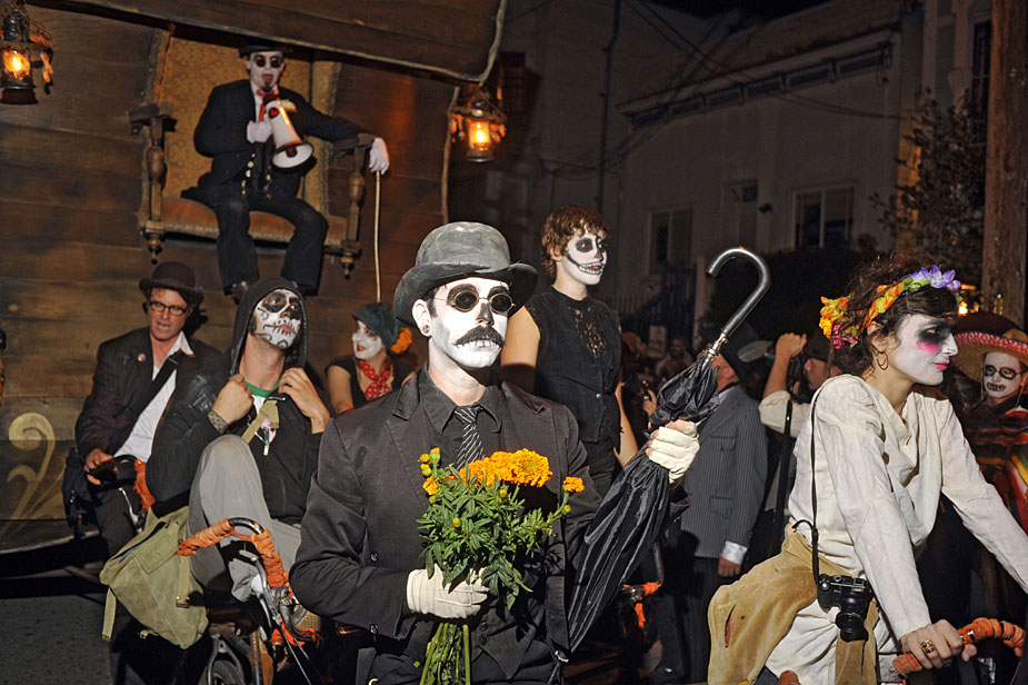 11月2日,美國舊金山居民扮成鬼怪模樣慶!巴鲮`節”!巴鲮`節”是拉美地區的傳統節日,類似于中國的清明節。來源:中國新聞網