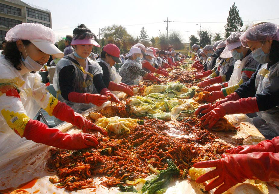 11月9日,約2700名韓國志愿者在首爾一所學校的操場上制作泡菜。