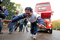 牛人用頭發拉雙層巴士