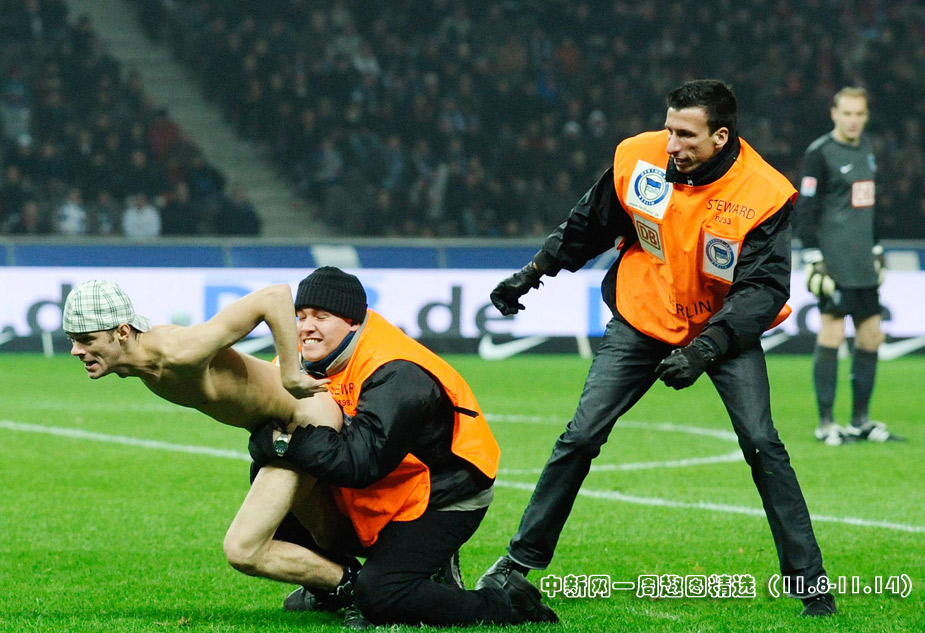 11月8日,09/10德甲第12輪賽事柏林赫塔主場0-1負于科隆,連續11輪聯賽不勝。一名憤怒的柏林赫塔球迷沖進球場內瘋狂的裸奔。圖片來源:中國新聞網>>點擊觀看詳細內容