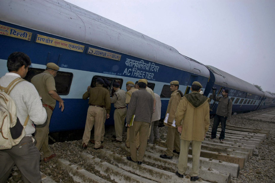 11月14日,印度西部拉賈斯坦邦一列駛往新德里的火車發生出軌事故,造成7人死亡,26人受傷。圖片來源:中國新聞網