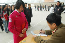 受閱女民兵報名參軍