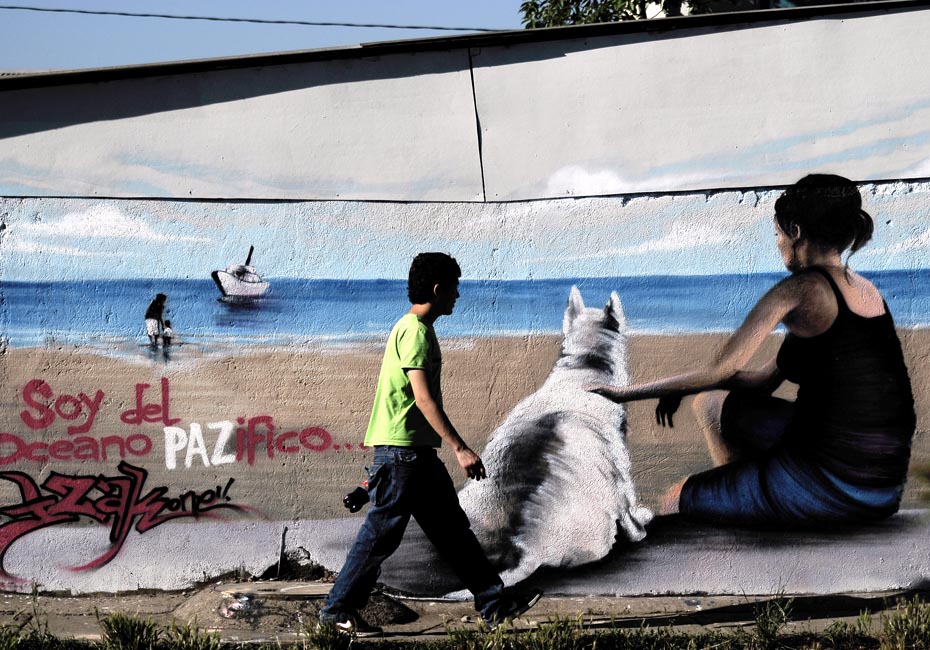 11月15日,智利圣地亞哥近千名藝術(shù)家繪制了1800米長的涂鴉墻,打破了吉尼斯世界紀錄。圖片來源:中國新聞網(wǎng)