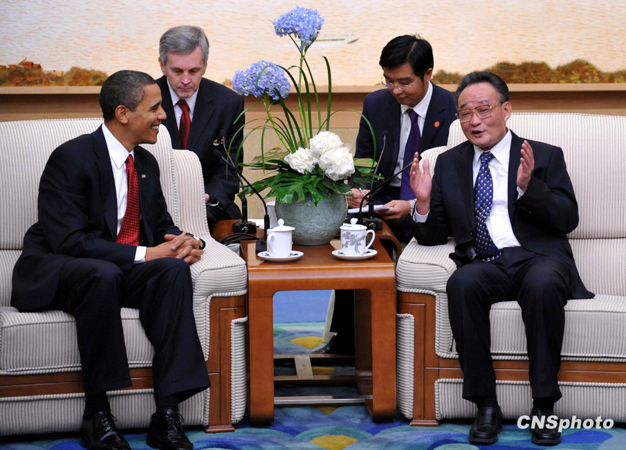 11月17日,中國全國人大常委會委員長吳邦國在北京人民大會堂會見了美國總統奧巴馬一行。中新社發 廖攀 攝