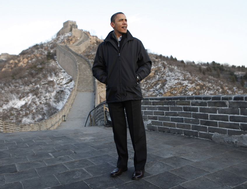 11月18日下午,美國總統奧巴馬抵達北京八達嶺,游覽長城風光。