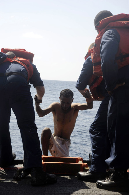 11月17日,亞丁灣,3名漁民抱著木板在海面上漂流3天后獲救。據悉,他們遭遇了十幾名名疑似海盜的劫持,海盜們讓其選擇或跳海逃生或被殺死。來源:中國新聞網