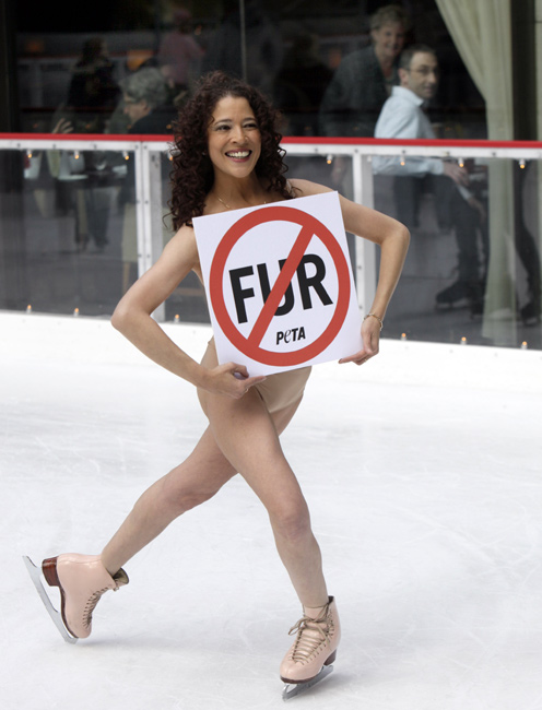 11月24日,美國花樣滑冰的傳奇人物、1979年世界花滑錦標賽冠軍得主芭比洛尼在紐約洛克菲勒廣場復出“裸滑”。這次表演是為了支持善待動物協會的反對皮草行動。