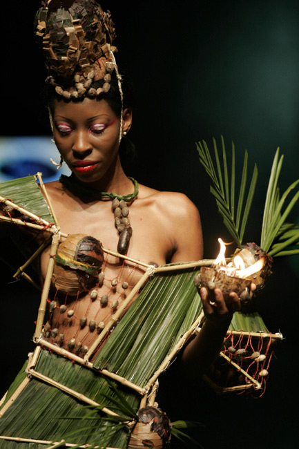 11月26日,哥倫比亞舉行了一場時裝秀,靚模身著頗具熱帶叢林風格的服飾,盡顯火辣、神秘的南美特質。圖片來源:中國新聞網