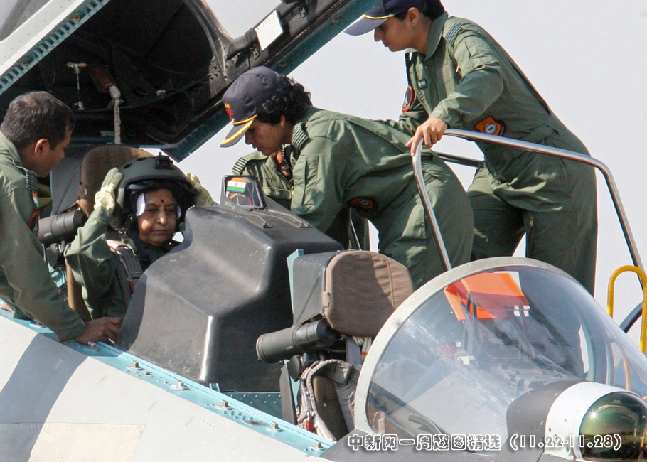 11月25日,74歲的印度女總統帕蒂爾在印度孟買附近的馬哈拉施特拉邦浦那地區的洛黑岡空軍基地,乘印度最先進的蘇-30戰斗機飛上藍天,這是她首次乘坐戰斗機。圖片來源:中國新聞網>>點擊觀看詳細內容