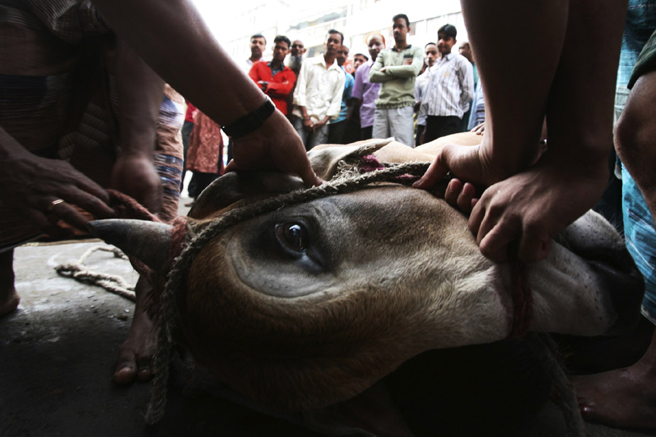 11月28日,世界各國的穆斯林迎來傳統節日“宰牲節”。圖為孟加拉的穆斯林在宰牲節上宰殺牲畜。