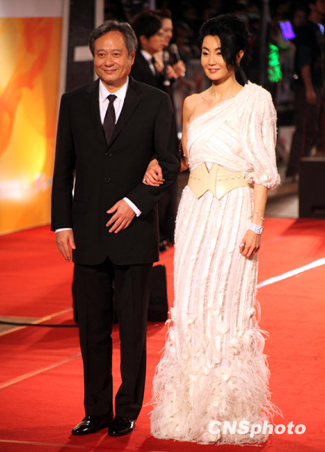 第46屆臺灣金馬獎頒獎禮28日晚上在臺北盛大舉行。金馬獎4屆影后、闊別臺灣9年的張曼玉此次擔任頒獎嘉賓讓不少人期待,當晚她攜手導演李安,以一襲斜肩白裙驚艷亮相,氣質不俗。中新社發 李佳佳 攝
