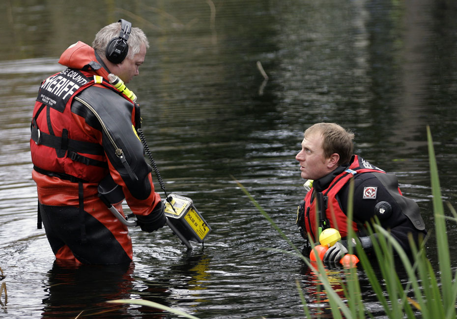圖為美國警方在附近水域檢查。