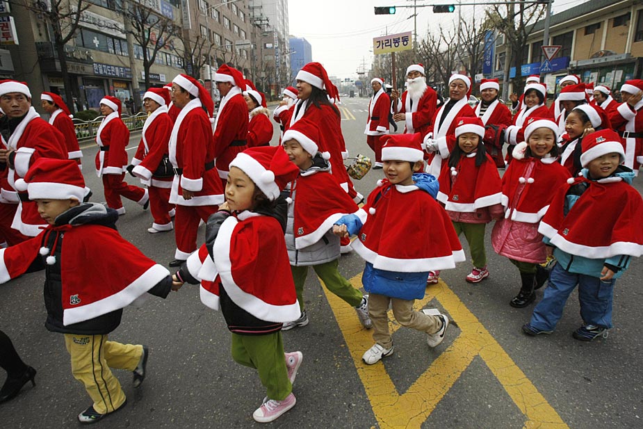 12月1日,韓國首都首爾市,一千多名“圣誕老人”舉行游行為社會慈善項目籌款。圖片來源:中國新聞網