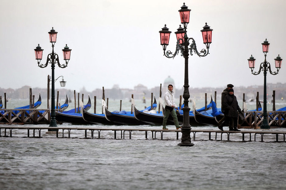 11月30日,意大利水城威尼斯受潮汐和一股強烈的熱帶風暴影響再次被洪水淹沒,部分地區最高水位達到1.31米。圖片來源:中國新聞網