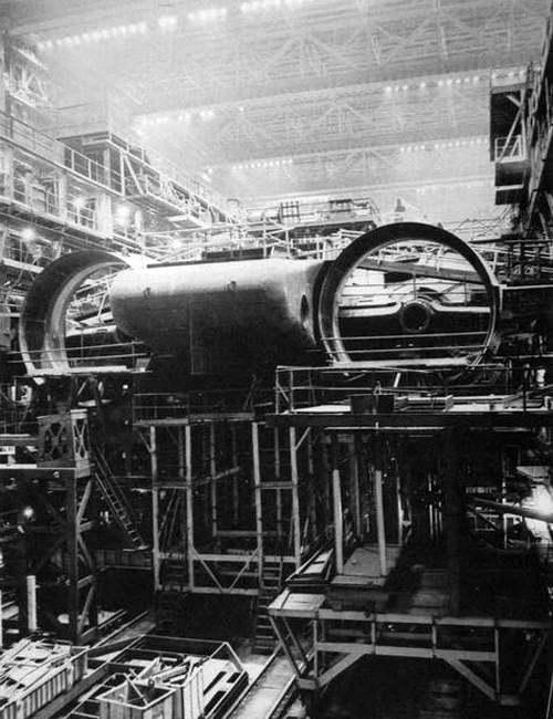 圖為建造中的“臺風”級巨大的涵道式螺旋槳推進器。圖片來源:人民網