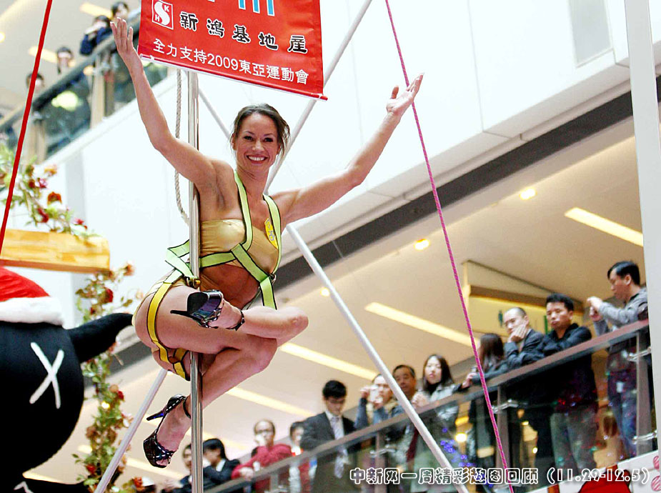 十二月三日,兩項(xiàng)吉尼斯世界紀(jì)錄鋼管舞蹈家Nele Sehrt在香港APM商場(chǎng)三十呎高空獻(xiàn)藝,示范一分鐘抱鋼管倒立動(dòng)作。中新社發(fā) 洪少葵 攝 圖片來(lái)源:中國(guó)新聞網(wǎng)>>點(diǎn)擊觀看詳細(xì)內(nèi)容