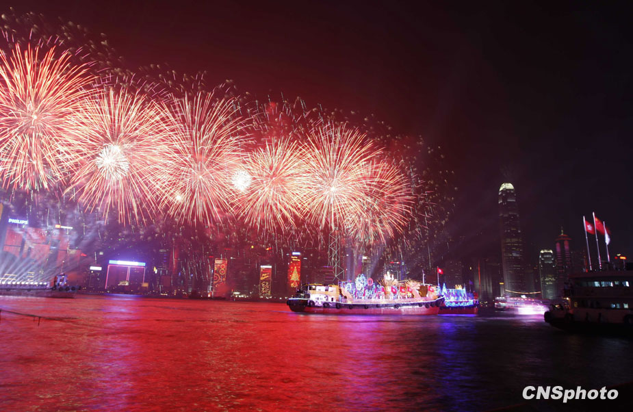 12月5日晚,第5屆東亞運(yùn)動(dòng)會(huì)開幕式在香港維多利亞港舉行,同時(shí)配以花船巡游、燈光效果和煙花匯演,成為一屆富有特色的水上開幕式。中新社發(fā) 盛佳鵬 攝