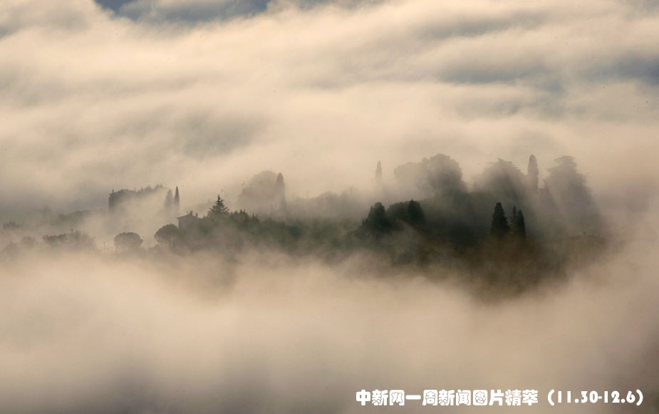 12月2日,大霧籠罩了意大利佩魯賈。圖片來源:中國新聞網(wǎng)