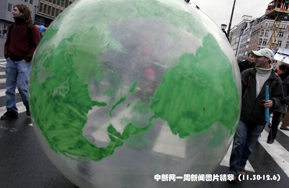 12月5日,近萬人比利時首都布魯塞爾進行游行,呼吁關注全球氣候變化。圖片來源:中國新聞網