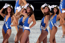 最大規模比基尼游行:11月7日,300余名南非女性著比基尼沿著梅爾羅斯門大道游行了1690米,在打破吉尼斯世界紀錄的同時提醒婦女提高防范乳腺癌的意識。圖片來源:中國新聞網