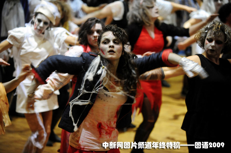 全世界最多人同時(shí)跳舞世界紀(jì)錄:10月25日,“戰(zhàn)栗全世界”活動在全球300多座城市同期舉行,全球一共有大約20000人同時(shí)跳起了邁克·杰克遜著名的戰(zhàn)栗舞。歌迷們借此表達(dá)了對這位流行音樂之王的哀思。并且刷新了全世界最多人同時(shí)跳舞的世界紀(jì)錄。圖為在法國的Gourin,歌迷跳起“戰(zhàn)栗舞”。圖片來源:中國新聞網(wǎng)