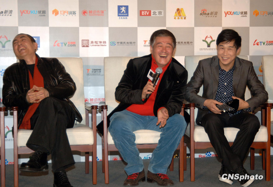 12月9日下午,張藝謀喜劇新作《三槍拍案驚奇》在京舉行首映發(fā)布會,導(dǎo)演張藝謀、大病初愈的趙本山攜孫紅雷、小沈陽、閆妮、倪大洪、程野、毛毛全明星主創(chuàng)團隊齊齊亮相。現(xiàn)場張藝謀、趙本山、小沈陽搞笑不斷,引得爆笑連連,上演了一出戲外喜劇。趙本山首度回應(yīng)了花兩億購買私人飛機一事,稱還沒有定下來。張藝謀表示會和“趙家班”繼續(xù)深度合作,并且豪言預(yù)計未來的中國電影單部影片票房可能達到2億美元。圖為張藝謀、趙本山、小沈陽成為“笑彈”。中新社發(fā) 李學(xué)仕 攝