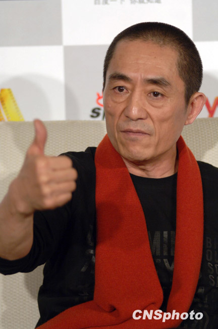 12月9日下午,張藝謀喜劇新作《三槍拍案驚奇》在京舉行首映發布會,導演張藝謀、大病初愈的趙本山攜孫紅雷、小沈陽、閆妮、倪大洪、程野、毛毛全明星主創團隊齊齊亮相。現場張藝謀、趙本山、小沈陽搞笑不斷,引得爆笑連連,上演了一出戲外喜劇。趙本山首度回應了花兩億購買私人飛機一事,稱還沒有定下來。張藝謀表示會和“趙家班”繼續深度合作,并且豪言預計未來的中國電影單部影片票房可能達到2億美元。圖為張藝謀信心滿滿。中新社發 李學仕 攝