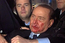 時值政治盟友沖刺階段,貝盧斯科尼照例參加自己黨派的集會。就在他給支持者簽名時,人群中一名中年男子突然毆打其面部。當地電視臺畫面顯示,跌倒在地的貝盧斯科尼被助手扶起時,口鼻出血,面部淤青,表情痛苦。