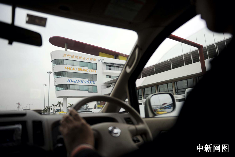 澳門民眾開車路過澳門賽車場,在平日里這個賽場的賽道作為普通道路供車輛行駛。中新社記者 廖攀 攝