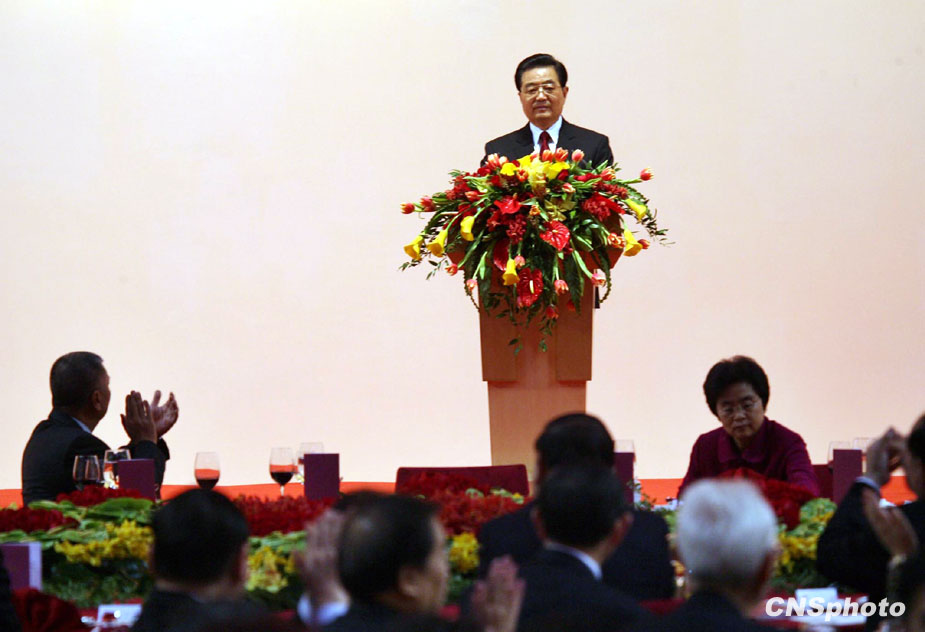12月19日,國(guó)家主席胡錦濤在澳門出席特區(qū)政府舉行的歡迎晚宴并致辭。中新社發(fā) 鄭祚聲 攝