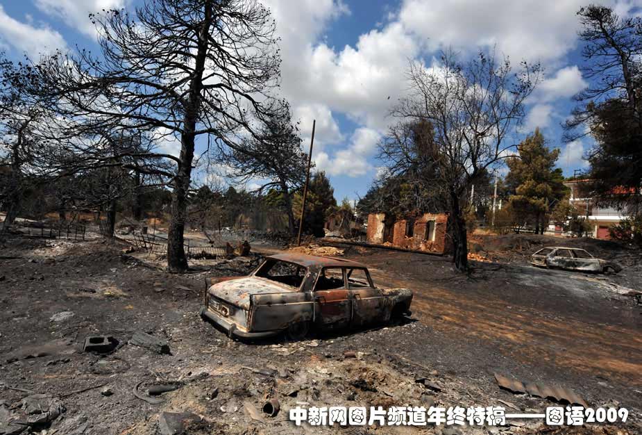 2009年8月25日,遭受山火襲擊的希臘雅典北部一片狼籍。