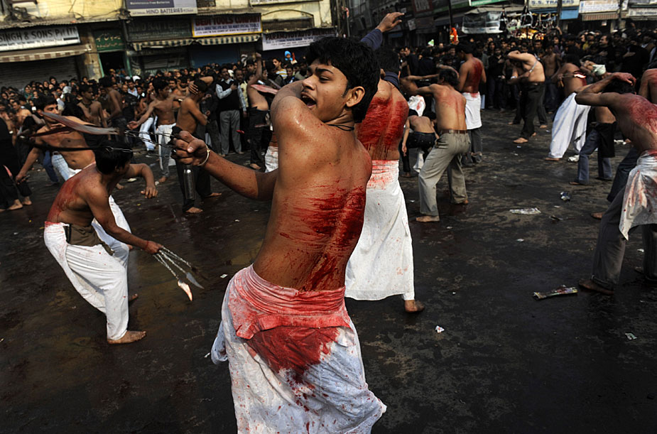 12月28日,印度穆斯林慶祝阿舒拉節。一些當地穆斯林在儀式上用鐵鞭抽打自己,以此慶祝節日。圖片來源:中國新聞網