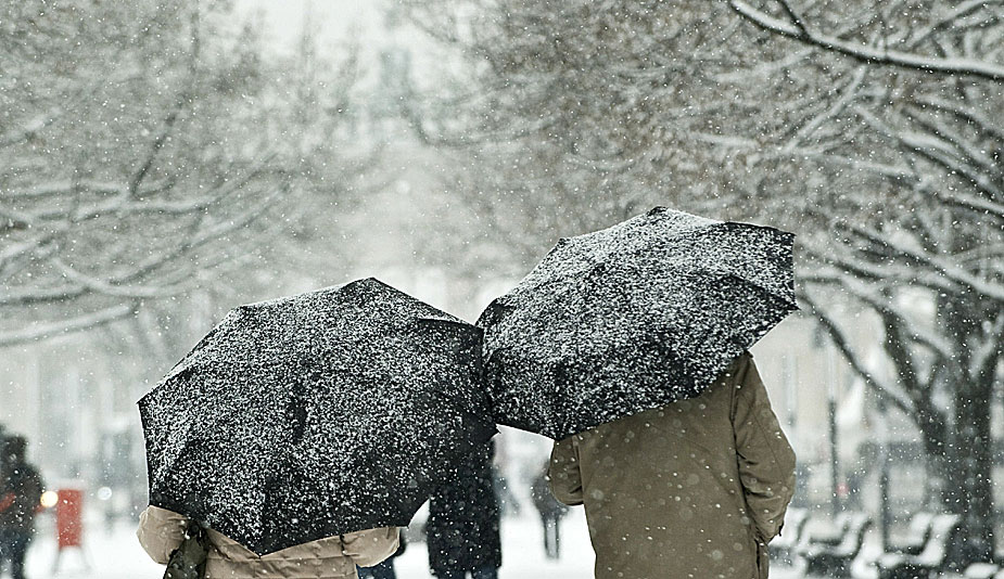 圖為12月30日,德國柏林降下大雪,人們打傘走在大街讓。