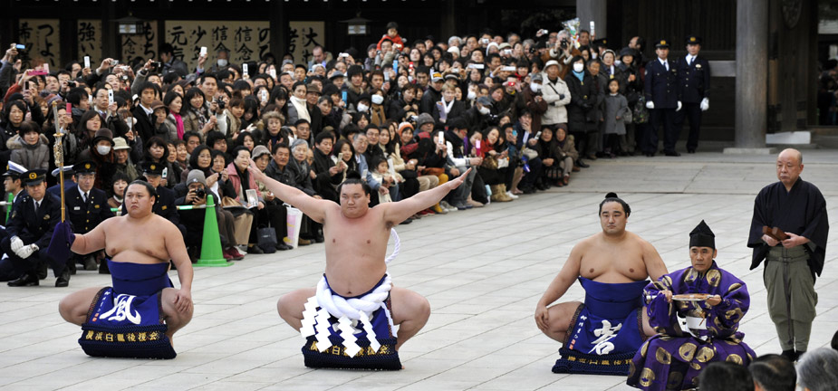 1月6日,日本舉行了傳統(tǒng)的相撲表演迎新年活動。