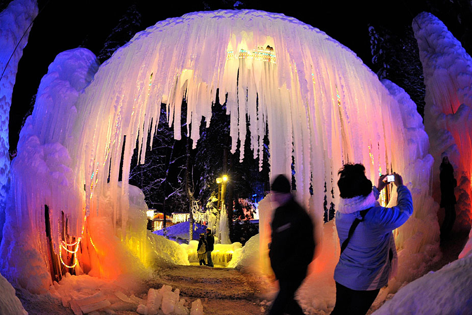 近日,瑞士藝術家卡爾豪斯在瑞士黑湖附近的弗里堡修建了一座美侖美奐的冰宮,令眾多游客流連忘返。圖片來源:中國新聞網