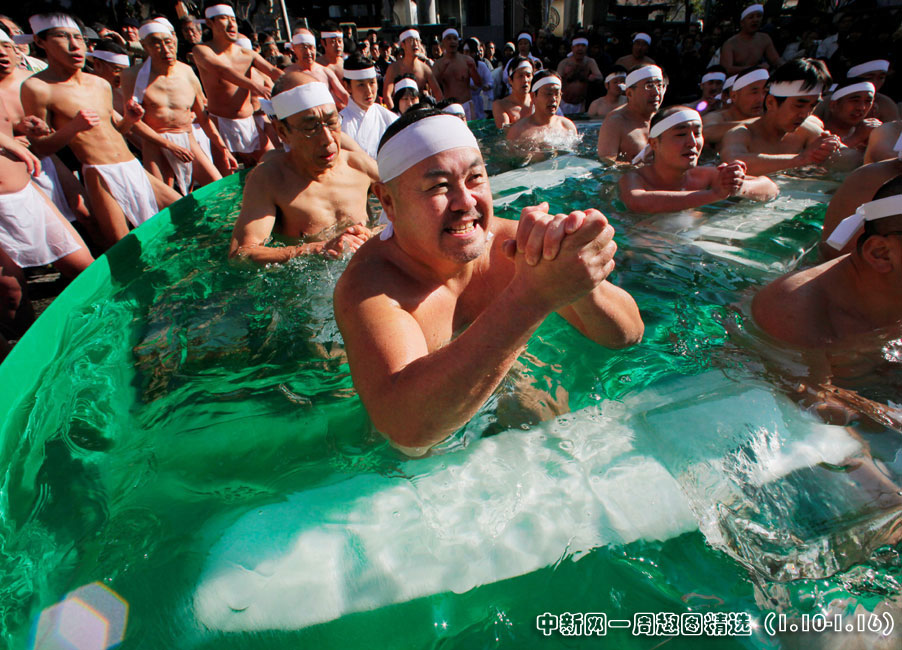 2010年1月10日,日本東京,眾多健身愛好者一同在冷水中浸泡,祈禱自己在新一年身體健康,并展示自己的體魄。圖片來源:中國新聞網>>點擊觀看詳細內容