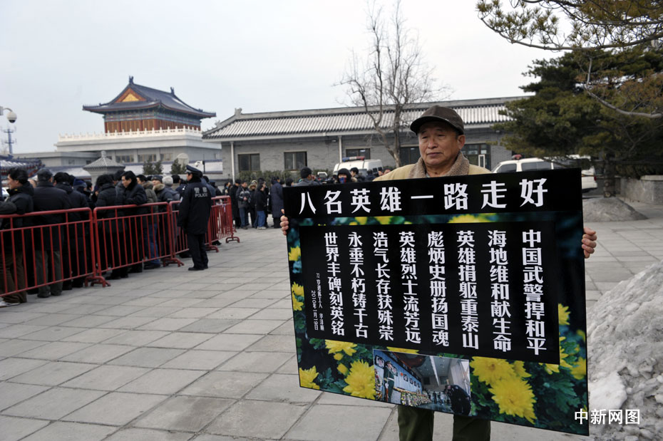 海地地震遇難中國維和警察遺體告別儀式1月20日上午9時在北京八寶山殯儀館大禮堂舉行。圖片來源:中國新聞網