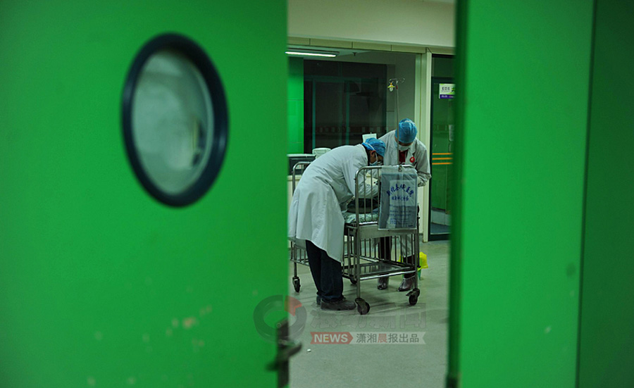 1月18日下午6點(diǎn)32分,在小振和去世后1小時(shí)內(nèi),眼庫(kù)工作人員到湖南省兒童醫(yī)院病房,在對(duì)著小小的遺體三鞠躬后,取出了眼角膜。瀟湘晨報(bào) 記者 楊抒懷 攝